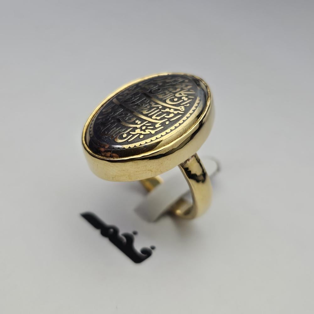 خاتم مصنوع من النحاس صياغه يدويه فخمه حجر حديد صيني هيماتيت منقوش قوله تعالى : بسم الله الرحمن الرحيم :