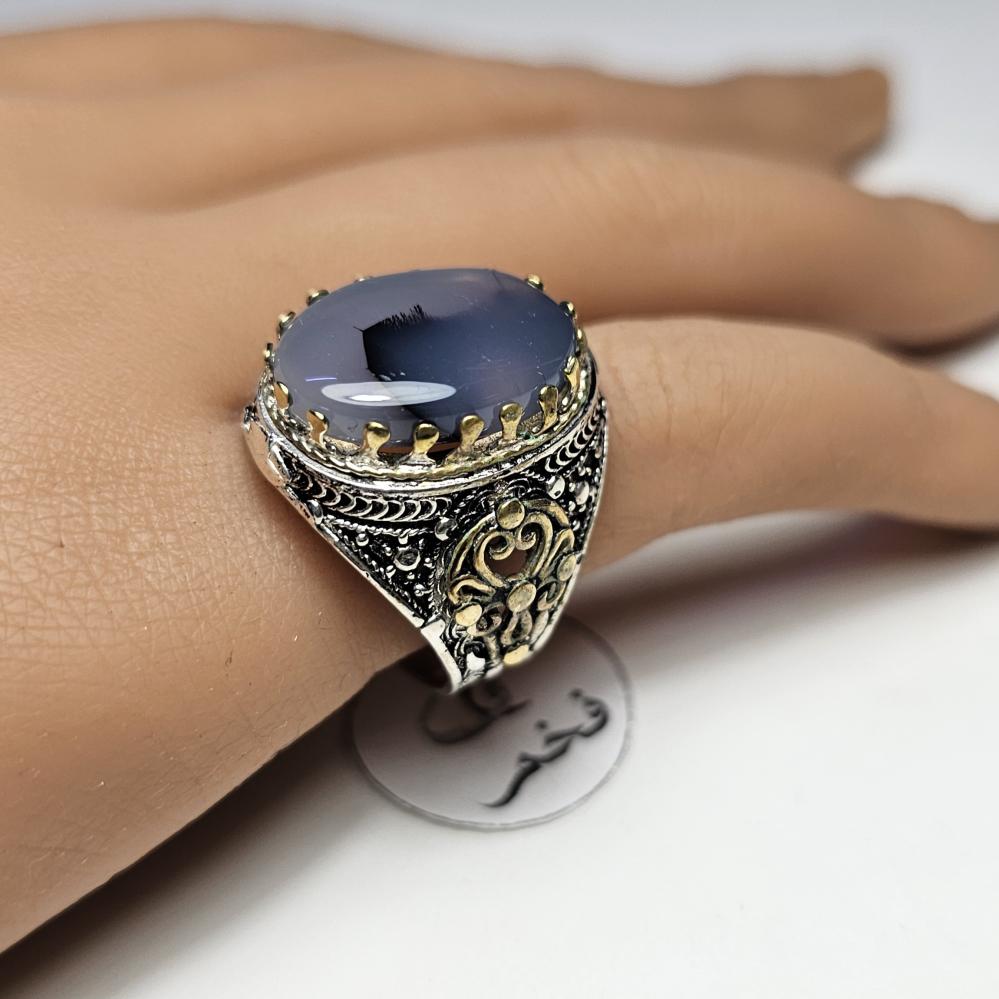 خاتم فضه يمني فخم حجر عقيق مصور يماني طبيعي