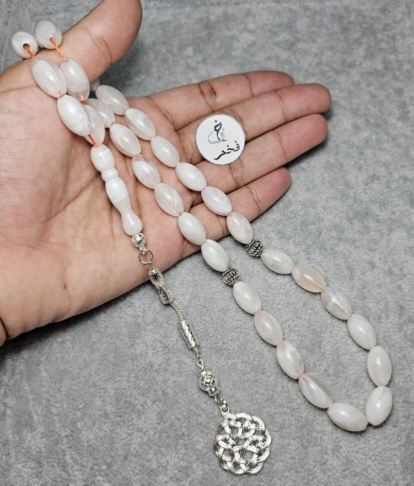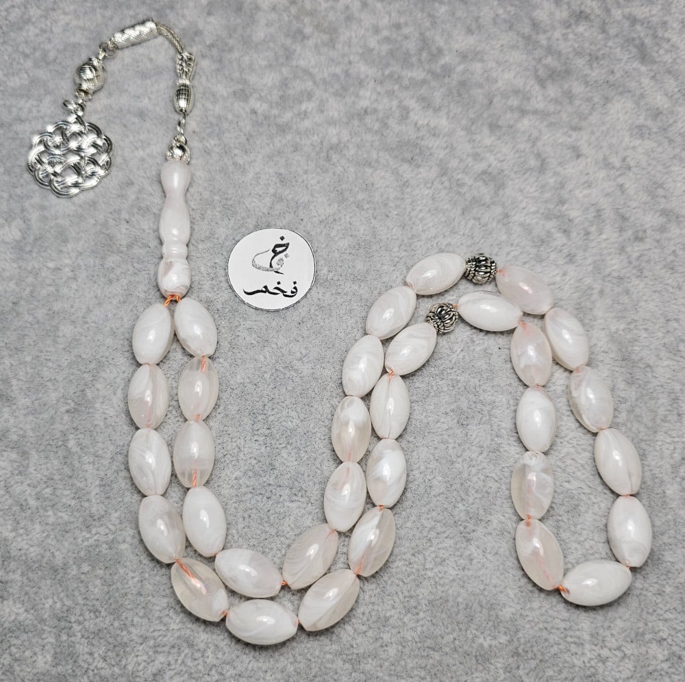 سبحة بكلايت أبيض معرق فخم مسبح 33 خرزه