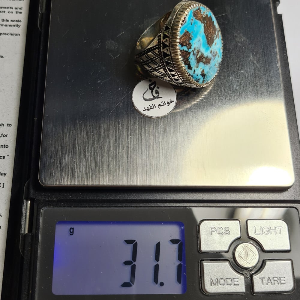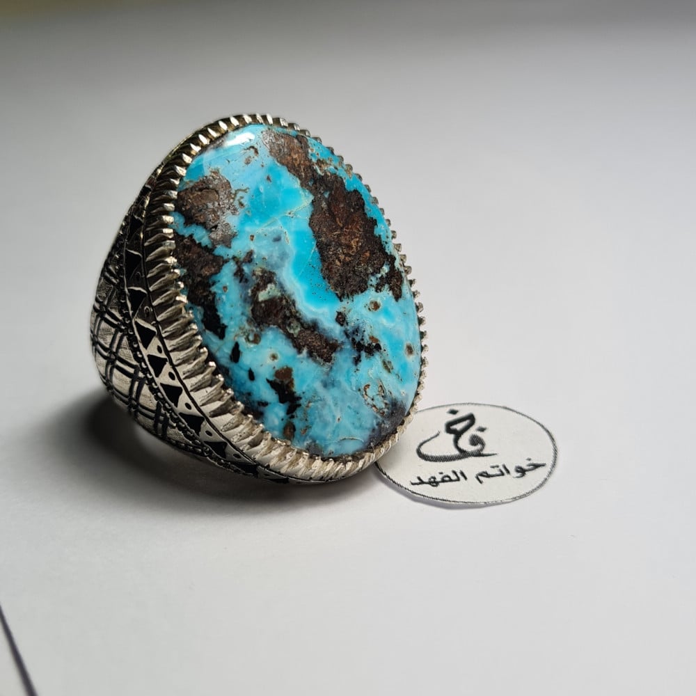 خاتم فضه راهي فخم بحجر فيروز نيشابوري طبيعي مميز حجم كبير