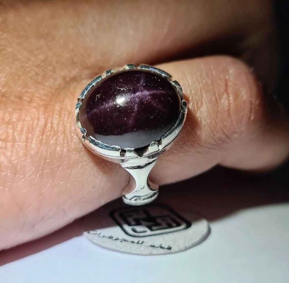 خاتم فضه فخم بحجر قارنيت نجمي طبيعي قارنت مميز